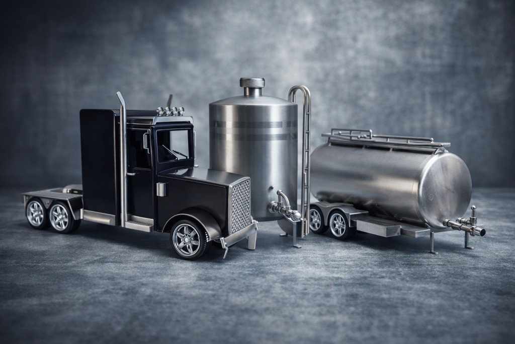 Miniaturas e peças funcionais em aço inox, produzidas manualmente em atelier.
